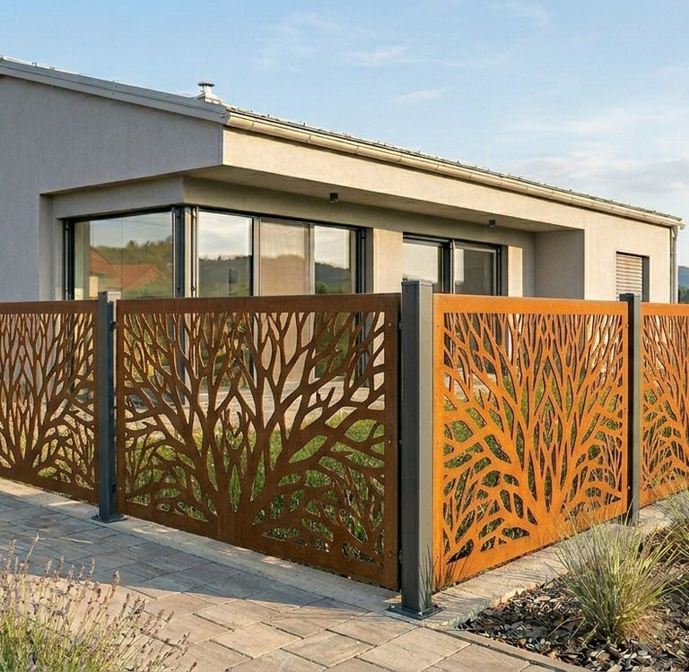 Izdelujemo in montiramo ograje, fasadne lamele ter pergole iz cortena.